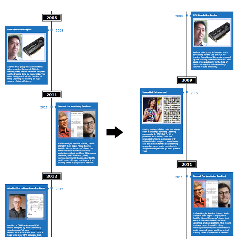 Left: Version of Brief History of Deep Learning from 1943–2019 [Timeline] on Apr 23, 2020. Right: Version today after the community uproar driven by Dr. Gebru’s tweet