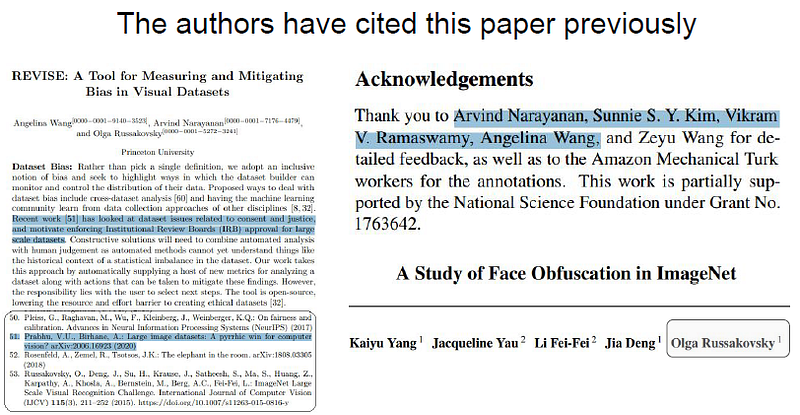 But the authors chose not to cite this one either. Their paper begins with “ Image obfuscation (blurring, mosaicing, etc.) is widely used for privacy protection. However, computer vision research often overlooks privacy by assuming access to original unobfuscated images” (Like, really?!🙄 ) and goes on to claim that they have discovered that “.. the dataset exposes many people co-occurring with other objects in images, e.g., people sitting on chairs, walking their dogs, or drinking beer (Fig. 1). It is concerning since ILSVRC is publicly available and widely used.”🥴